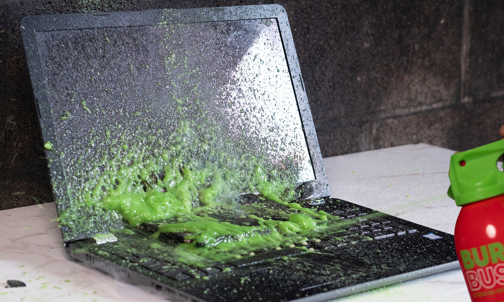 BurnBuster is designed to effectively extinguish lithium-ion battery fires by creating a cooling and insulating layer on the burning surface. BurnBuster's superior encapsulating abilities, covering and affixing to the battery, form a protective layer which removes the heat, separating the oxygen from the fuel.